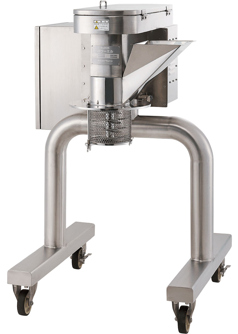 【概要】食品、医薬品に対応可能なサニタリー性を有す解砕整粒機。硬く大きな塊の解砕に適しており、解砕後の粉粒体を空気輸送で移送可能である。(使用例:バキュームコンベアとの組み合わせ)【特長】●貯蔵、輸送、プロセス内で発生した凝集粉体を解砕●面間74.5mmと短く、狭いスペースに設置が可能●材質はSUS316L●特殊ローターと固定歯により解砕●G.M.P.対応【仕様・用途等】●サイズ φ150, φ200, φ300, φ350, φ400 5種類●用途 ・砂糖、塩など固化しやすい粉体ほぐし。 ・化学品製造工程で凝集してできるブロックのほぐし。 ・ウェットケーキ、冷凍果物などの解砕。●電動モーターによる駆動(耐圧防爆型も対応可)