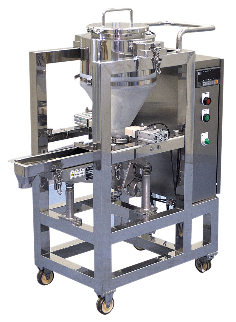 【製品の概要・特長等】昇降動作機構としてのエアアクチュエータを作動させて、コーンバルブを昇降させることにより、ホッパとカットシール間に隙間を生じさせて、粉体を排出します。●貯留ホッパ内の粉体残量にかかわらず、粉体の排出/停止が自由にできます。●排出量の調整は、コーンバルブの上昇高さと作動時間を制御することで、任意に設定できます。●広範囲の排出量を制御することにより、計量用フィーダとして使用することが可能です。●コーンバルブ内部にバイブレータが装備され、任意に運転することができ、ブリッジ・ラットホールの発生を防止します。●流動性の悪い粉体、排出が困難な粉体の排出・計量が可能です。